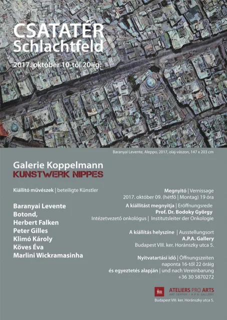 The Csatatér - Schlachtfeld (Battlefield) exhibition is presented by Galerie Koppelmann – Kunstwerk Nippes to tie in with their appearance at the Art Market Budapest.